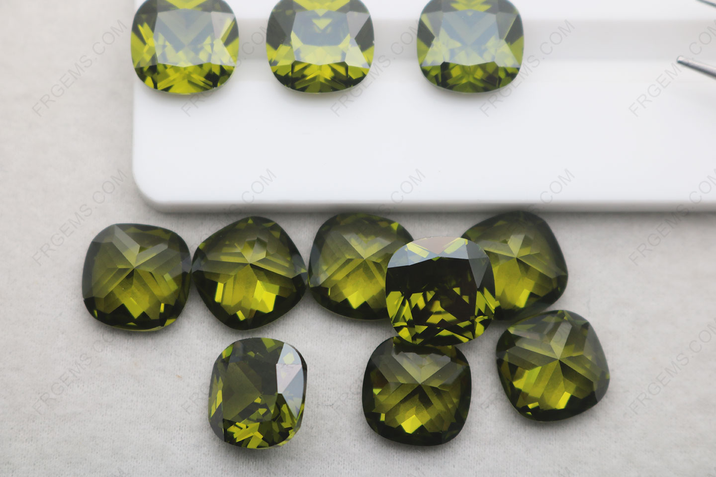 Loose Cubic Zirconia Peridot Light Color Cushion Shape faceted cut 12x12mm gemstones CZ26 wholesale from China Manufacturer and Suppliers