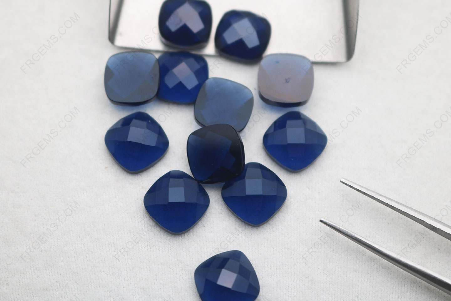China Nano Crystal Sapphire Blue Dark color 121# Cushion Shape checkerboard top flat bottom cut 11x11mm gemstones