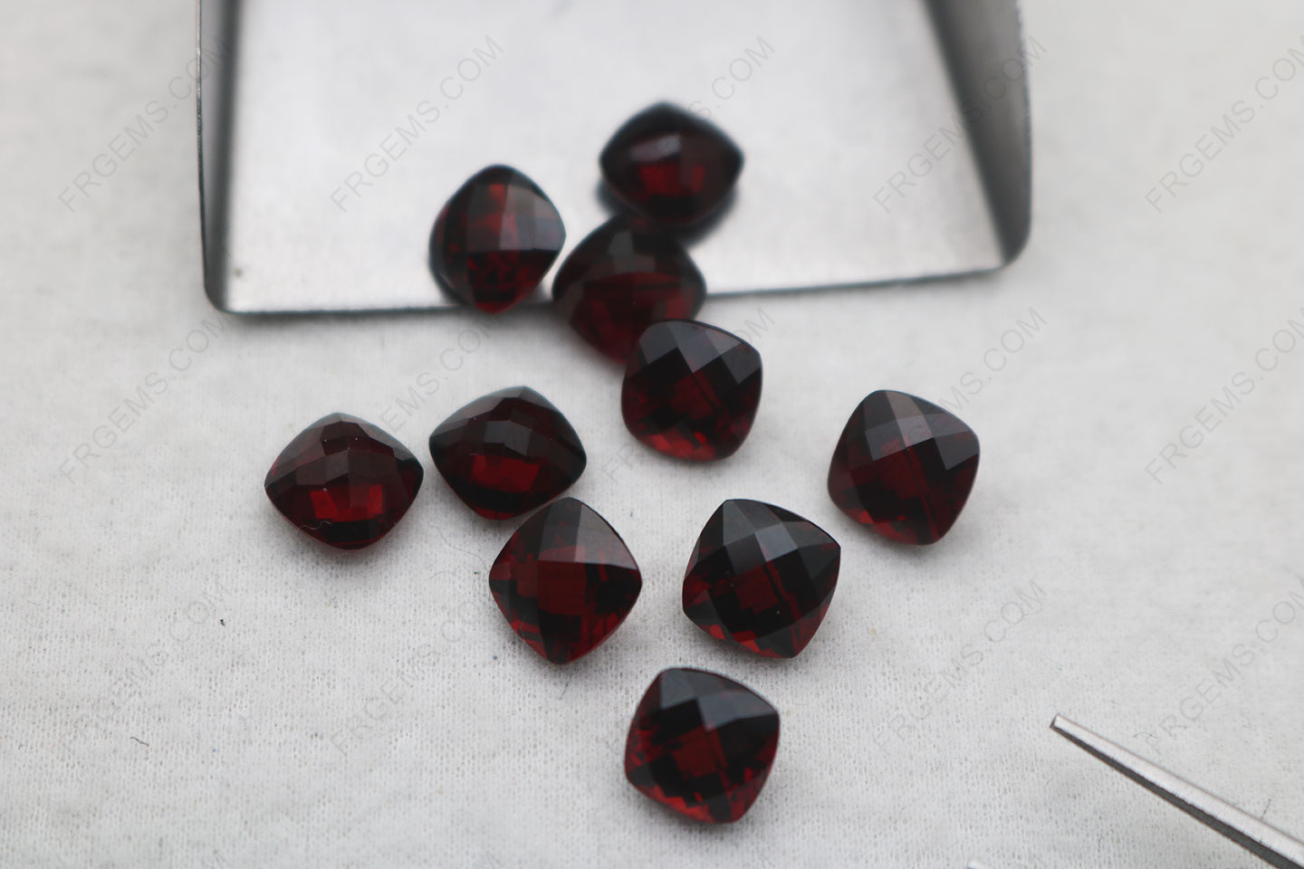 Loose Natural Semi Precious Genuine Mozambique Garnet Red Color Cushion Shape checkerboard cut 8x8mm gemstones Wholesale at factory direct price from China Suppliers and manufacturers.