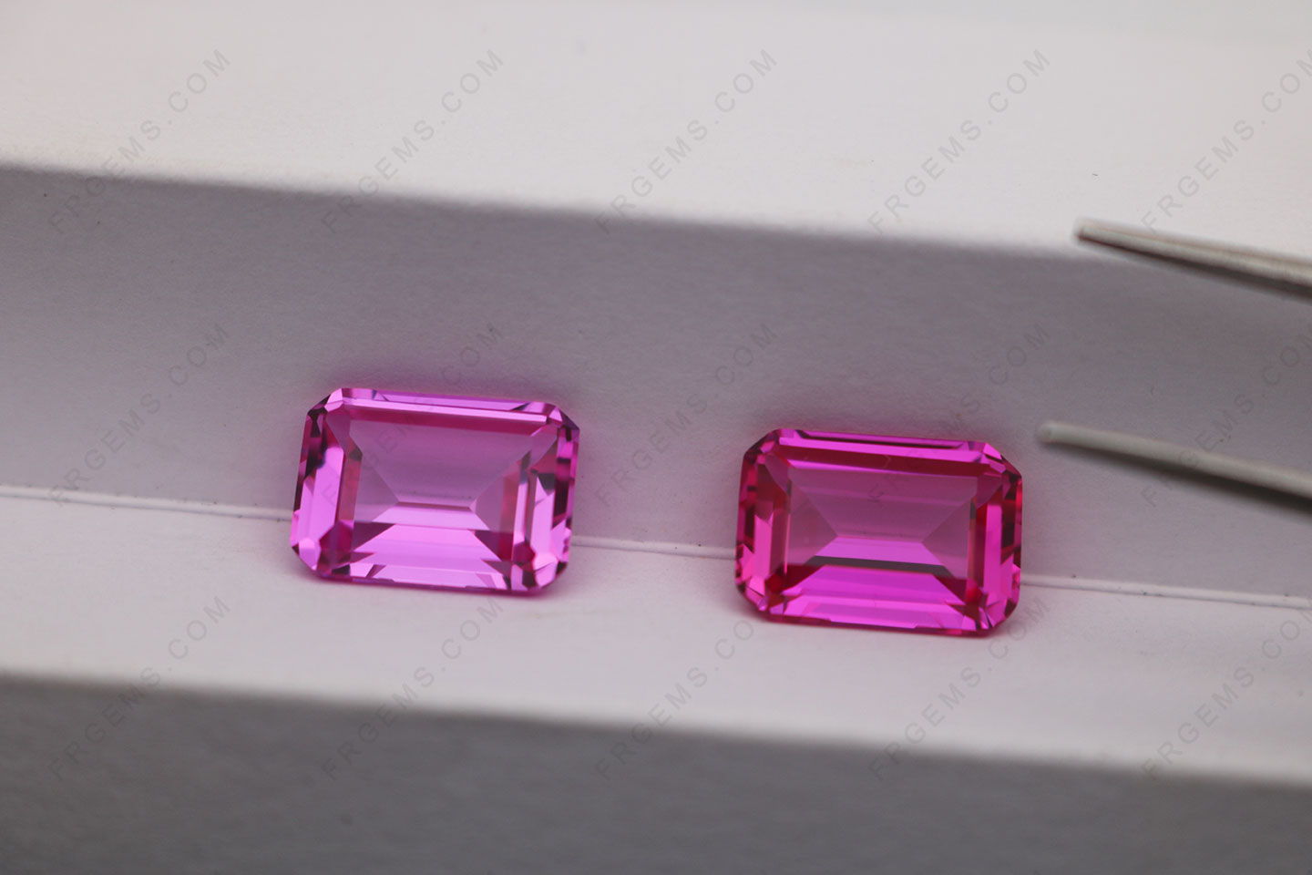 Wholesale Synthetic Pink Sapphire Corundum 2# VS 3#Color Emerald Cut 14x10mm loose gemstones from China